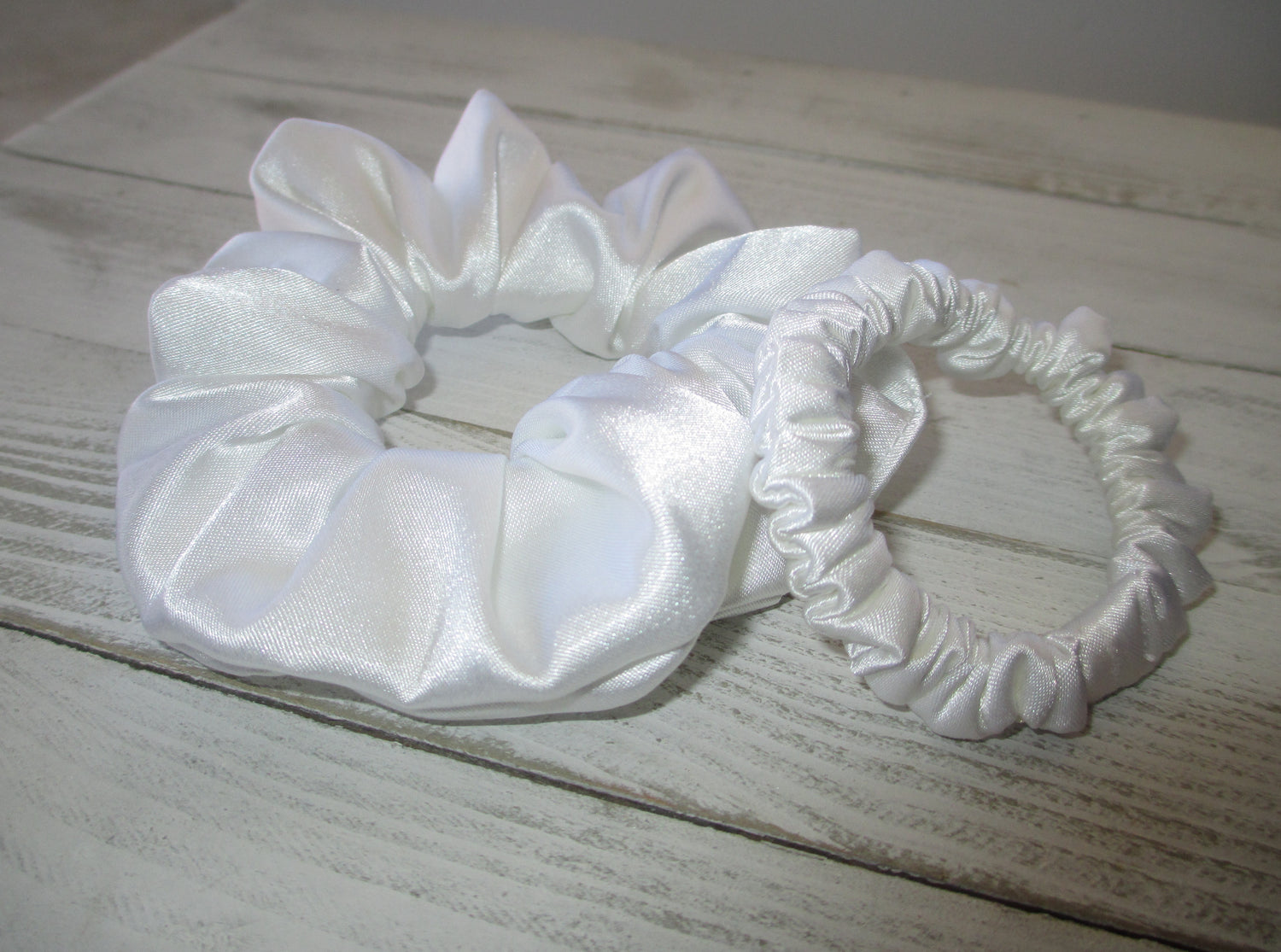 Satin is known to be gentle on the hair, helps prevent frizz, and won’t absorb the moisture from your hair. With all of these advantages satin scrunchies can be comfortably and safely worn while sleeping. Inside each scrunchie is a 3/8-inch braided elastic secured with machine stitches to ensure no breakage.