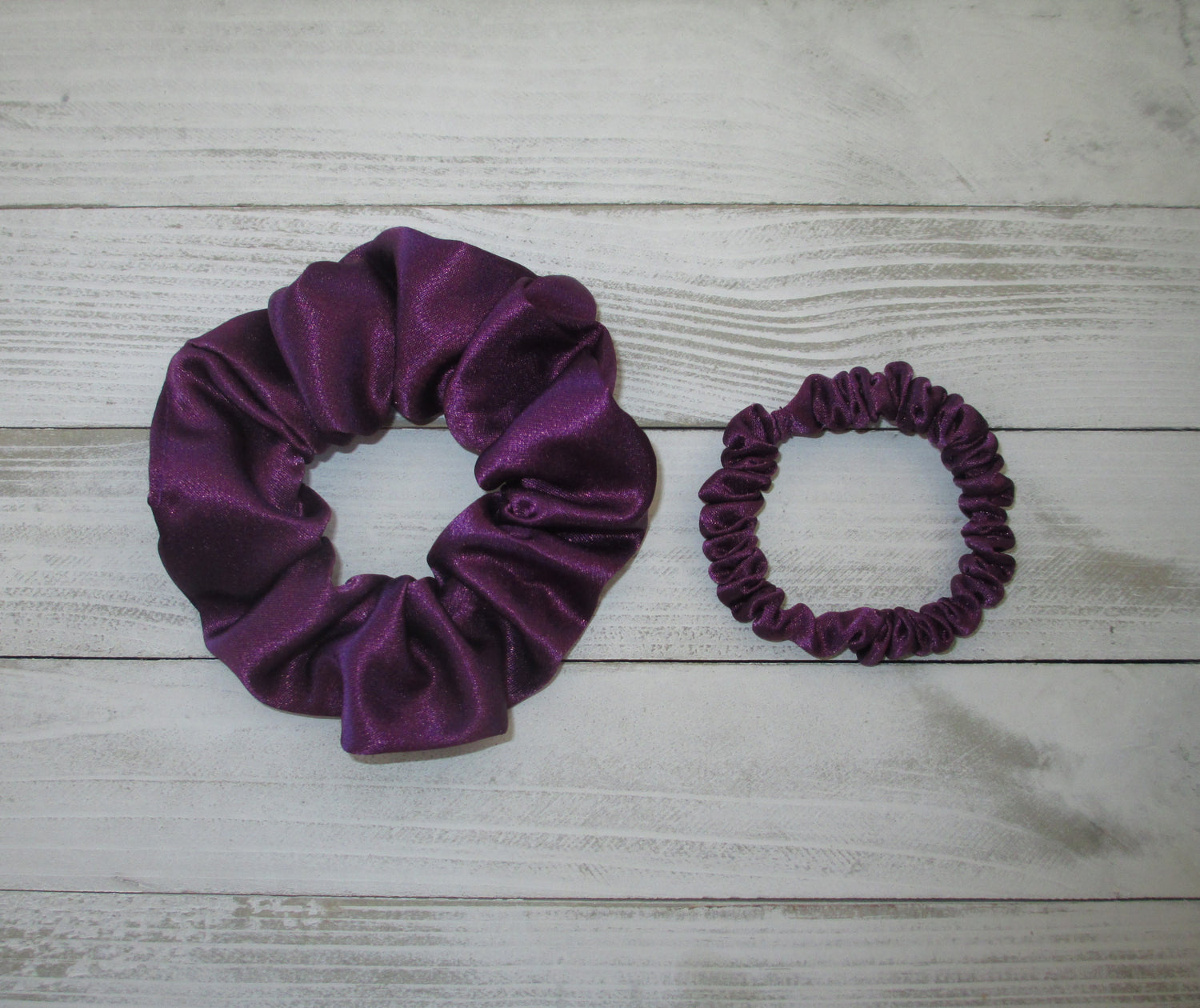 - Mini: Made with a ¼ inch braided elastic. The finished scrunchie measures approximately 2 ¾ inches straight across.