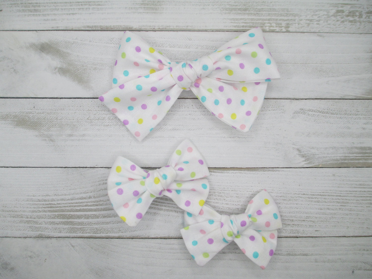 Available in two sizes and are perfect to complete your little girls look. Have fun adding this cotton bow to any ponytail, top knot, or messy bun!