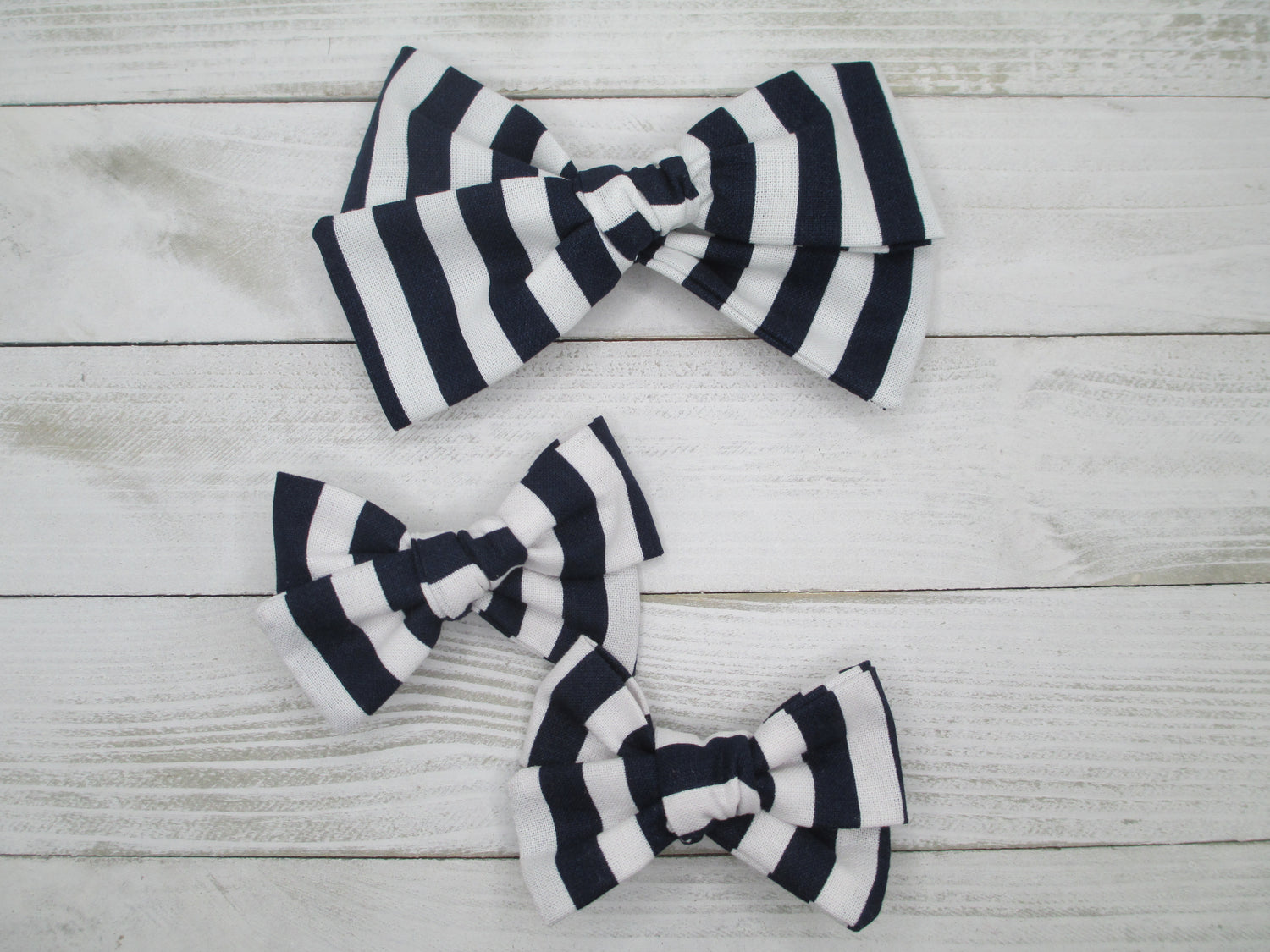 Available in two sizes and are perfect to complete your little girls look. Have fun adding this cotton bow to any ponytail, top knot, or messy bun!